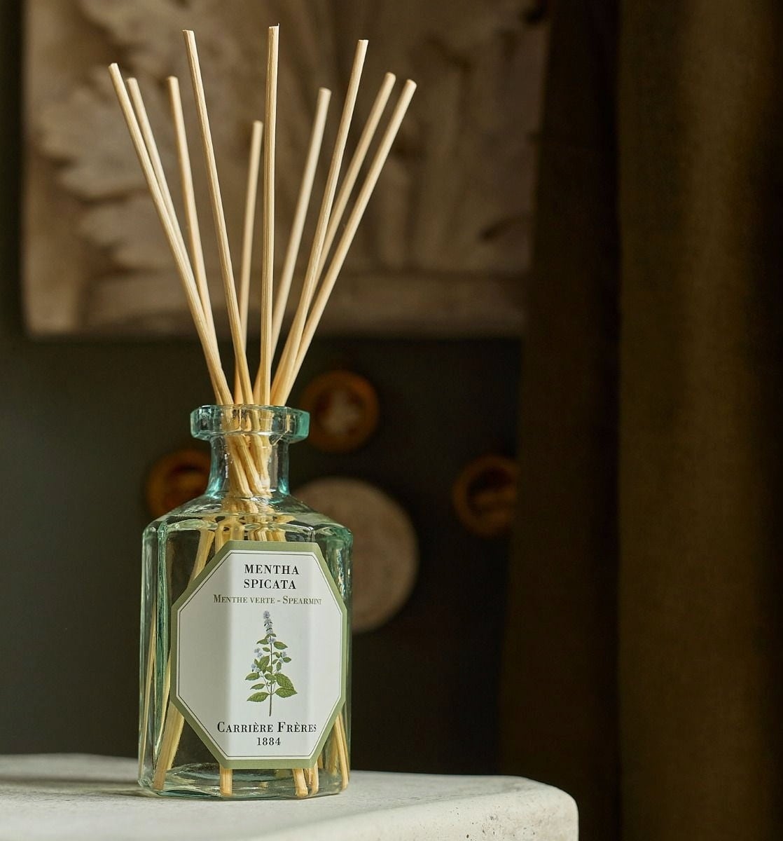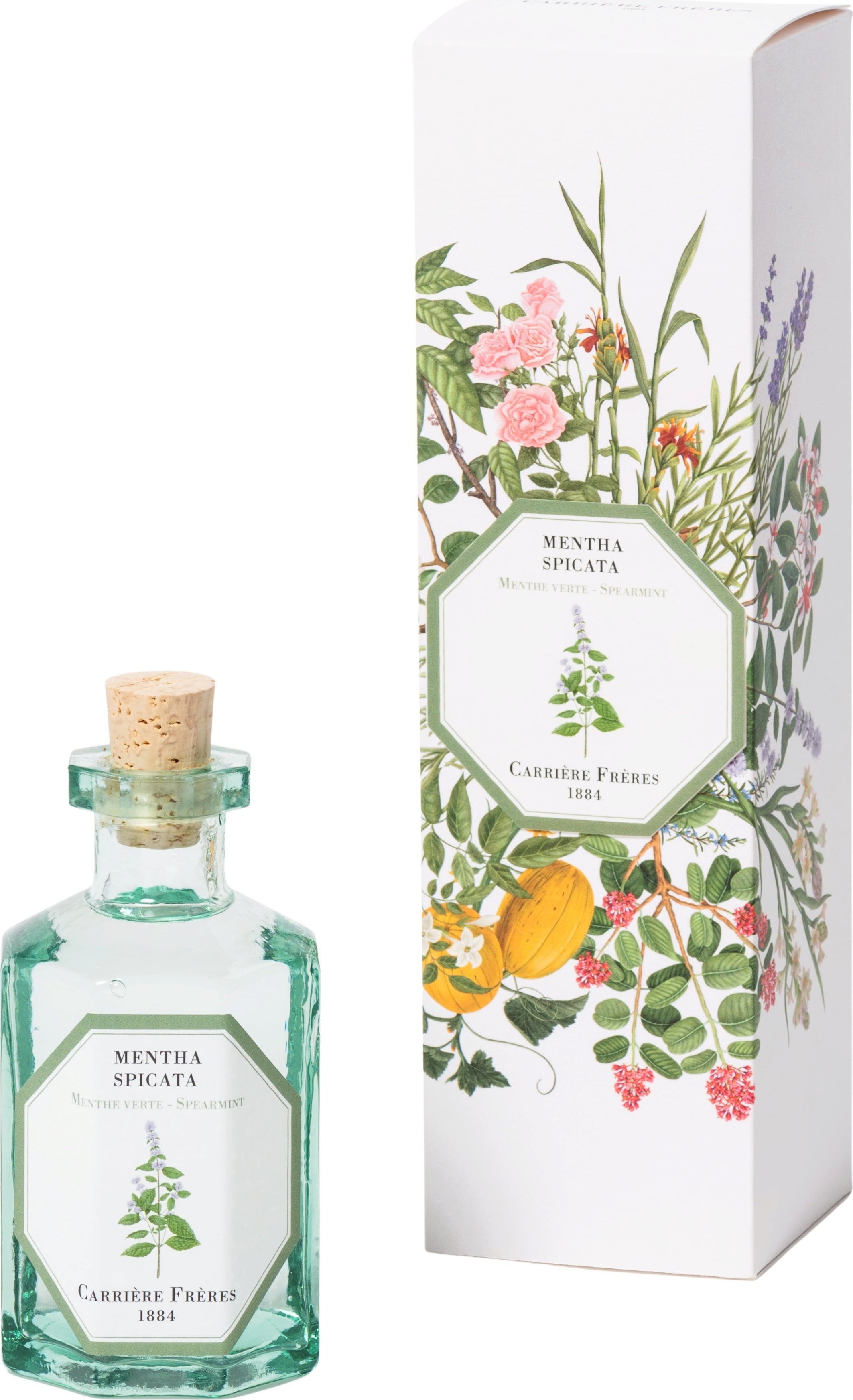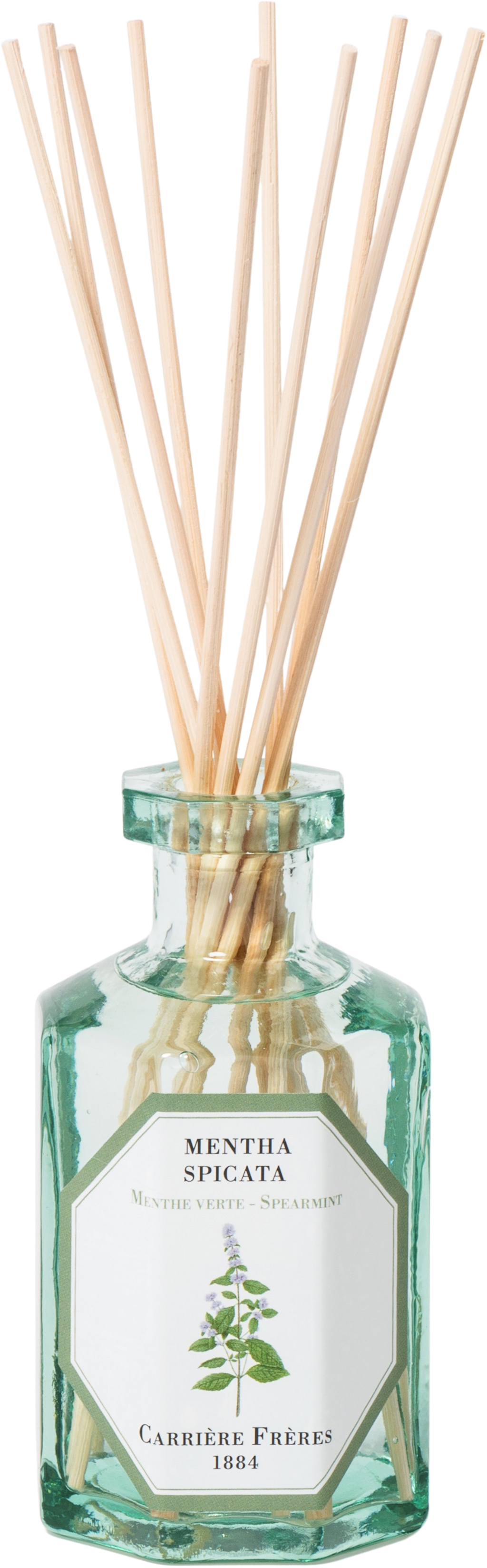 Дифузерът Spearmint от Carrière Frère има билков аромат, който се усеща като леко пикантен, свеж и зелен. Този нежен, но опияняващ аромат ще ви придружава през пролетните дни и топлите летни вечери. Освен това, ментата е известна със своите ободряващи свойства и може да ви подкрепи в стресови ситуации.