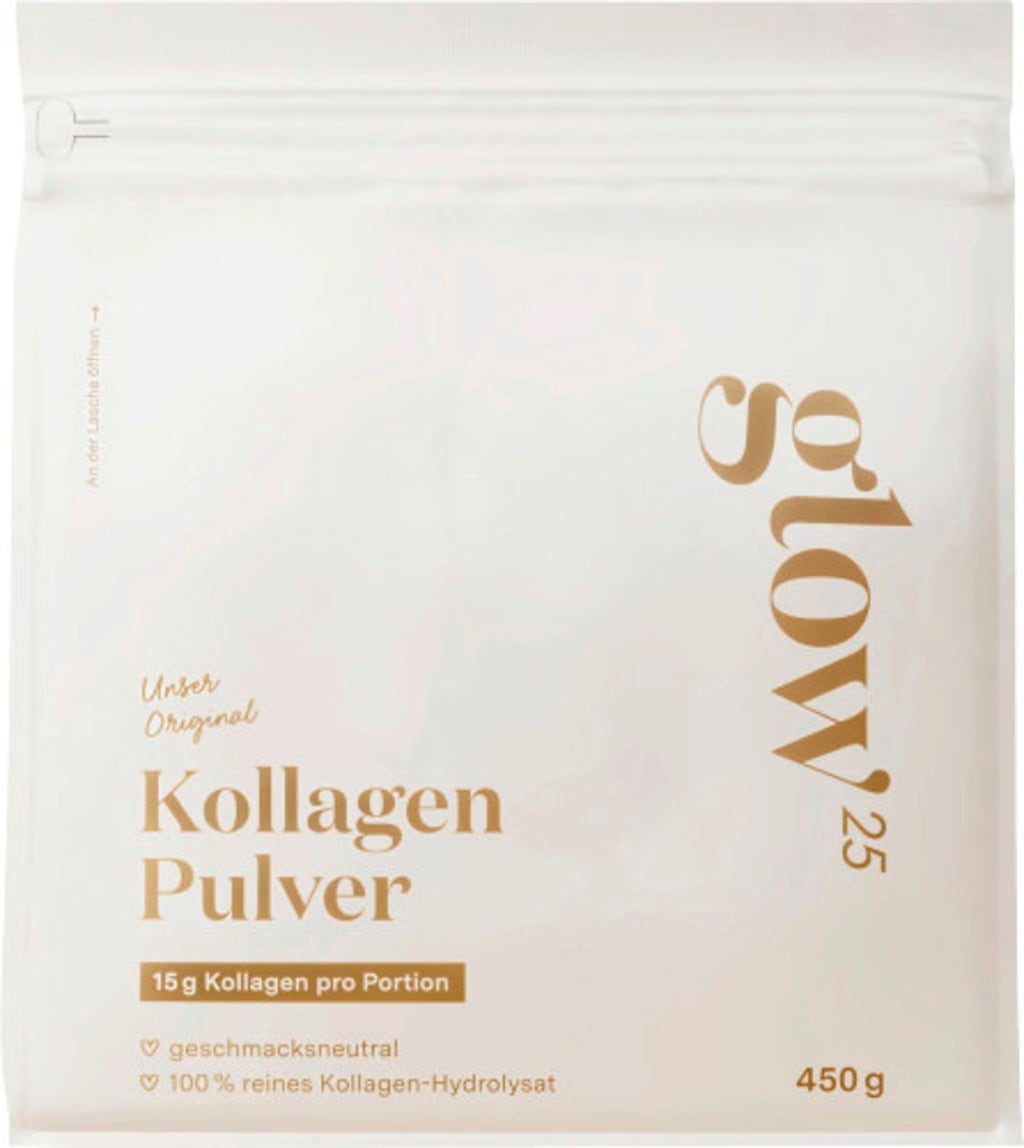 Glow25 Collagen Powder е биоактивен хидролизиран колаген на прах, който лесно се разбърква в топли и студени напитки, както и в храна. Прахът е без вкус и благодарение на специален процес на агломерация се разтваря бързо и без образуване на бучки. Glow25 не съдържа изкуствени добавки, консерванти или пълнители.