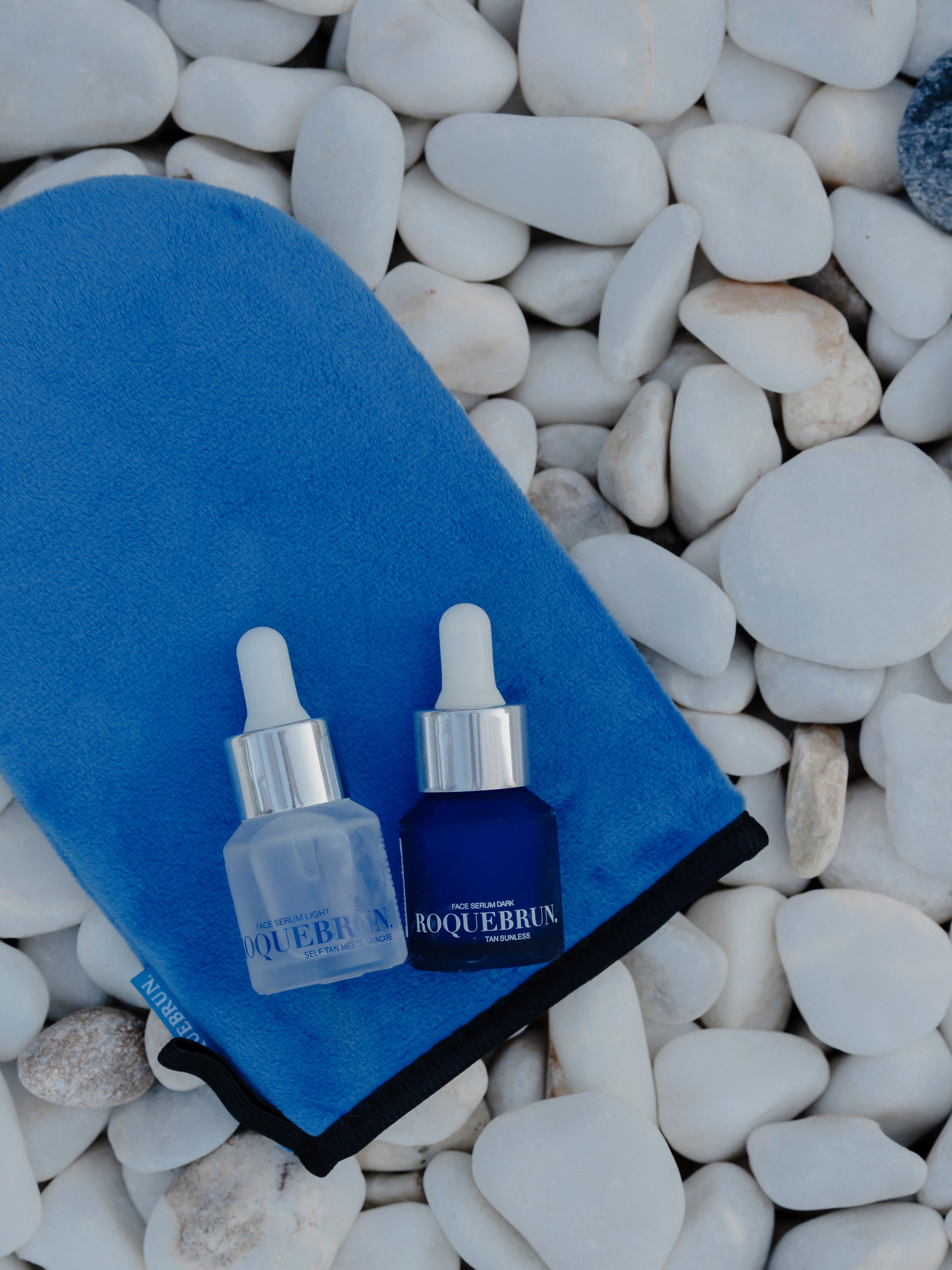 Мини комплект от ROQUEBRUN съдържа два самовъзстановяващи серуми, които ви осигуряват естествено изглеждащ бронзов тен и същевременно интензивно хидратират кожата. Можете да нанесете серумите директно върху почистената кожа или да ги комбинирате с ежедневните си козметични продукти. Висококачествени съставки като растителен ретинол, хиалуронова киселина, колаген и алое вера ви подкрепят в грижата за кожата, като я изглаждат, укрепват и успокояват. Тези самовъзстановяващи серуми са подходящи за всички типове кожа, могат да се прилагат сутрин и вечер, и ви даряват с естествен бронзов оттенък без оранжев подтон. Леките, нелепнещи текстури бързо се абсорбират, са без аромати и показват резултати в рамките на 4-8 часа, които продължават 3-4 дни. Насладете се на слънчев тен, докато оптимизирате своята грижа за кожата.