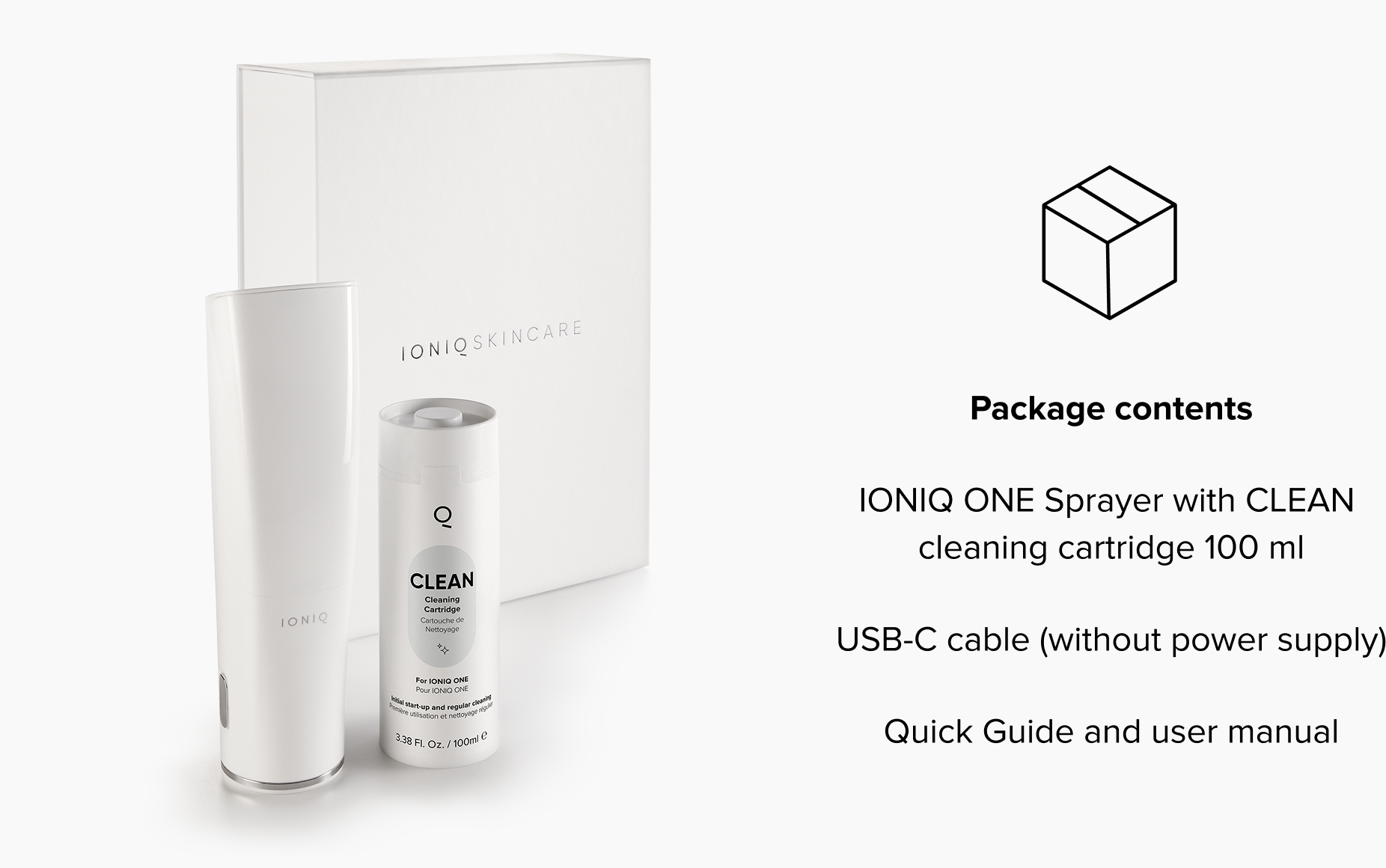 Благодарение на IONIQ Skincare App можете да разширите обхвата на функциите на вашия спрейър. Чрез Bluetooth ще ви бъде показан нивото на напълване на касетата, времето за работа на батерията, технически актуализации и още много други неща. В приложението ще намерите и персонализирани уроци, инструкции за грижа, определяне на типа кожа, както и съвети и трикове.