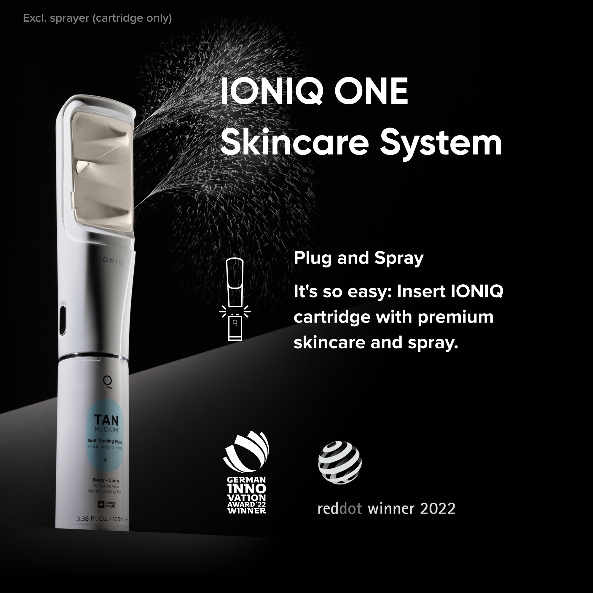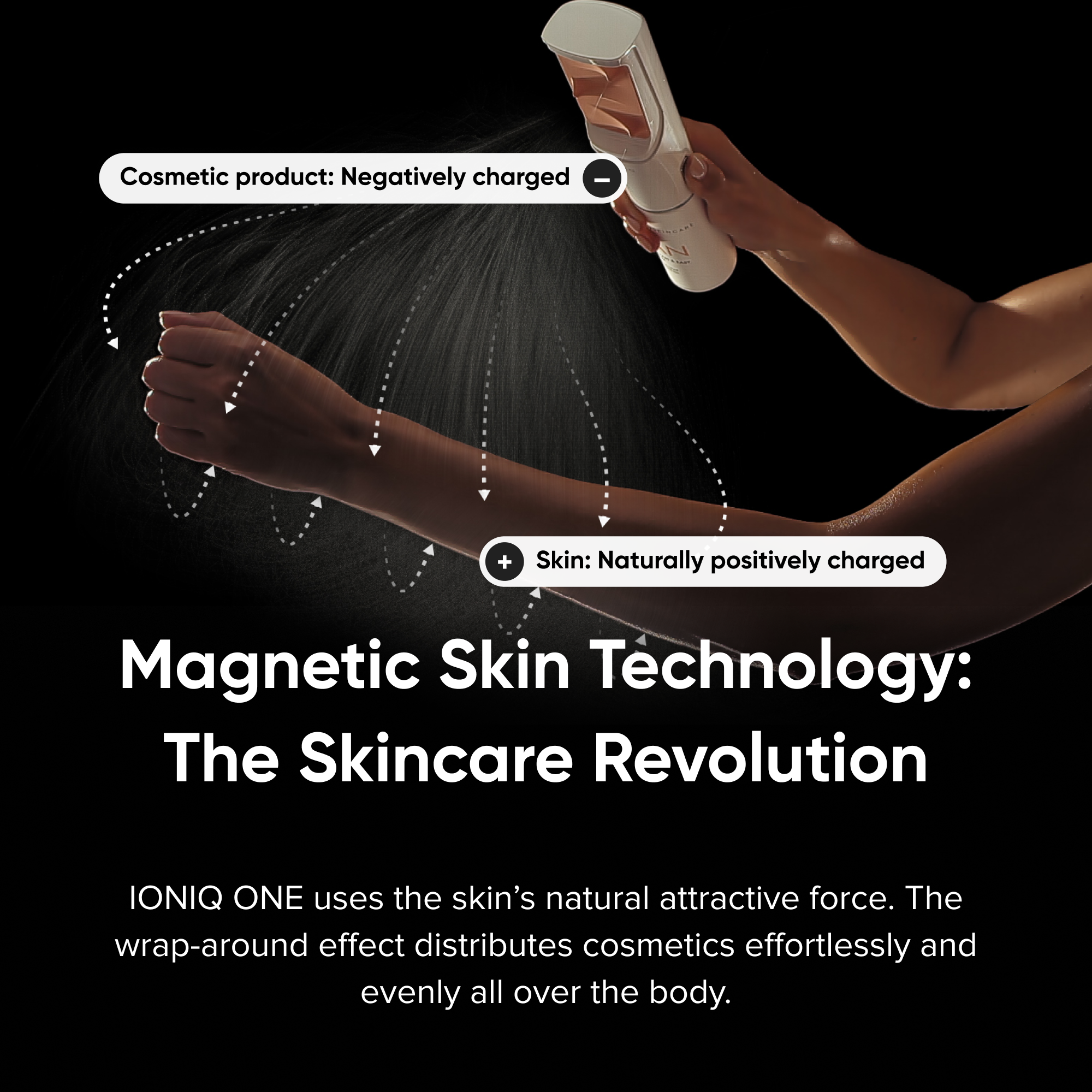 ONE Sprayer от IONIQ ви осигурява изключително ефективна грижа за кожата, тъй като апликаторът предлага безконтактно нанасяне на продукт, което ви позволява да напръскате тялото си лесно, бързо и прецизно. Интелигентният спрейър функционира на база патентована Magnetic Skin Technology, която създава привличане между кожата и продукта за грижа – подобно на магнит. Така всяка капка от козметиката попада върху кожата. Благодарение на 360° ефекта вашата кожа е покрита безупречно, а вие достигате до трудно достъпни места, като например гърба, без проблеми. Разходът на касетите от IONIQ също е много икономичен, тъй като можете да поддържате дозировката много прецизна и постоянна.