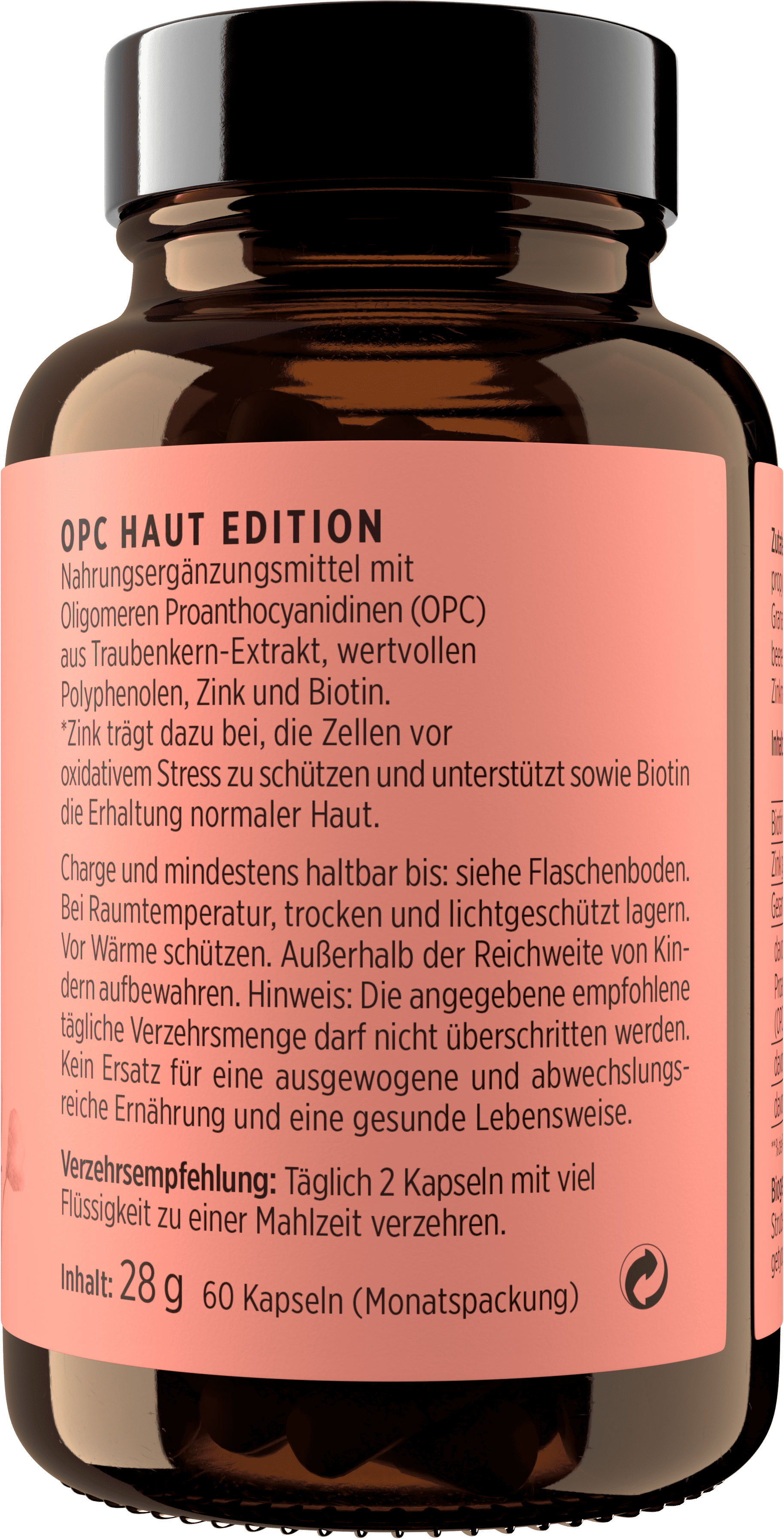 OPC HAUT EDITION съчетава 400 mg OPC от висококачествен екстракт от гроздови семена с естествени полифеноли, цинк от две добре поносими съединения и биотин.