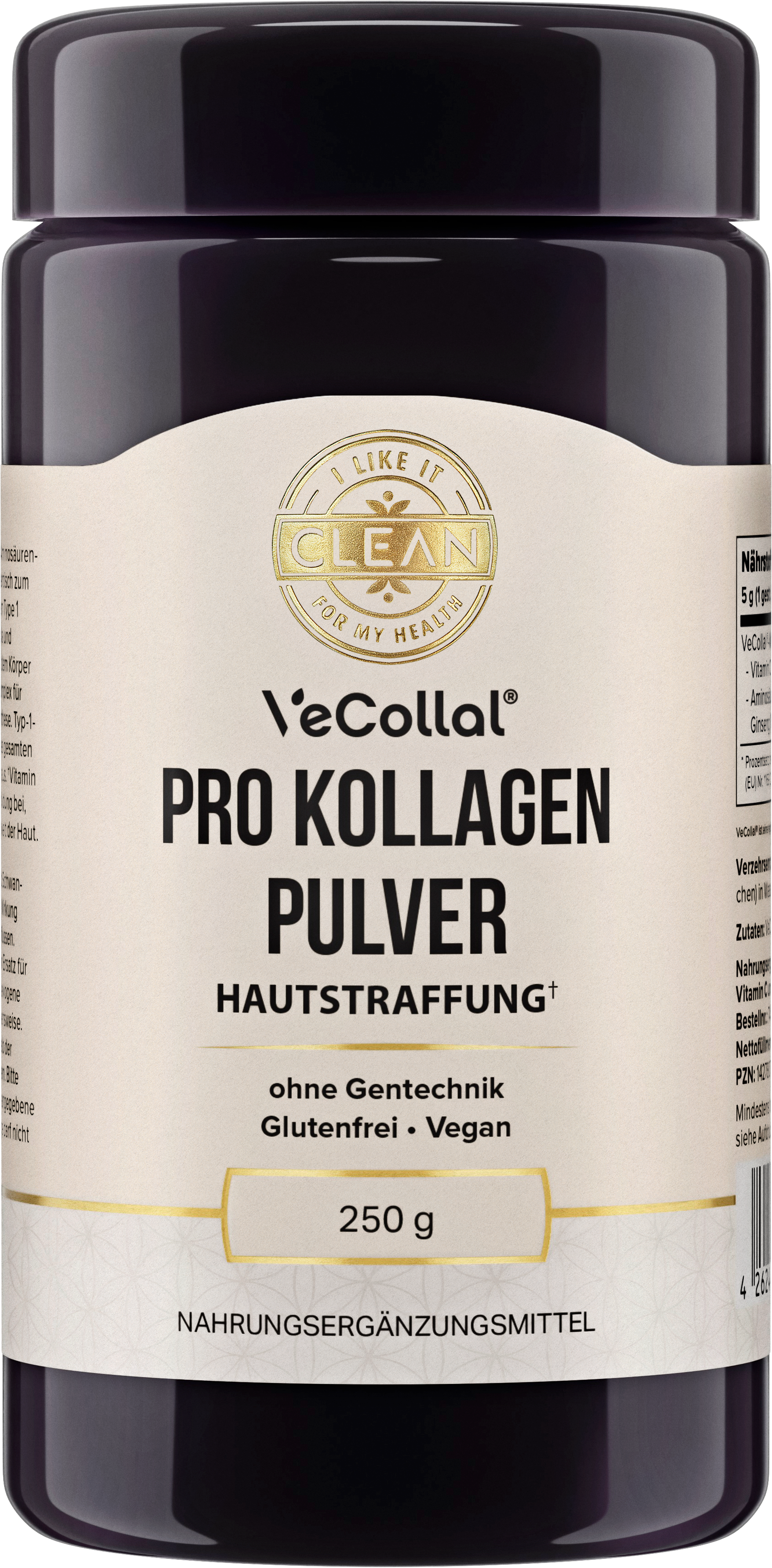 Pro Collagen Powder от i like it clean съдържа сместа VeCollal® и е първият в света веган колаген на прах. Съставен е от смес с общо 19 аминокиселини (идентични на човешкия колаген тип 1), витамин С, центела азиатска и женшен.
