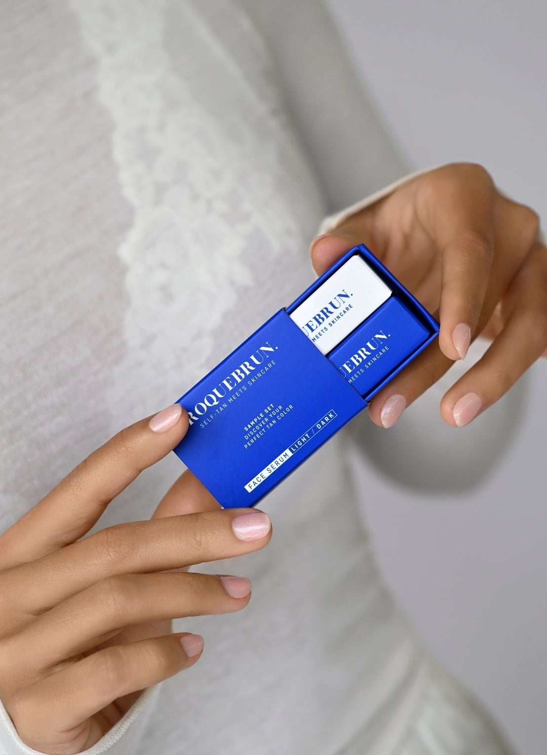 Примерният комплект от ROQUEBRUN съдържа два себеобзагаряющи серума, които ще осигурят на вашата кожа естествен загар, като едновременно с това я хидратират интензивно. Можете да нанесете серумите директно върху почистената си кожа или в комбинация с други ежедневни продукти за грижа. Висококачествени съставки като растително ретинол, хиалуронова киселина, колаген и алое вера ще допринесат за вашата грижа, изглаждайки, укрепвайки и успокоявайки кожата. Себеобзагаряющите серуми са подходящи за всички типове кожа, могат да се използват сутрин и вечер, и предлагат естествен загар без оранжев оттенък. Леките, немазни текстури се абсорбират бързо, са без аромат и резултатите се появяват в рамките на 4-8 часа, като издържат 3-4 дни. Насладете се на слънчев тен, докато оптимизирате грижата си за кожата.