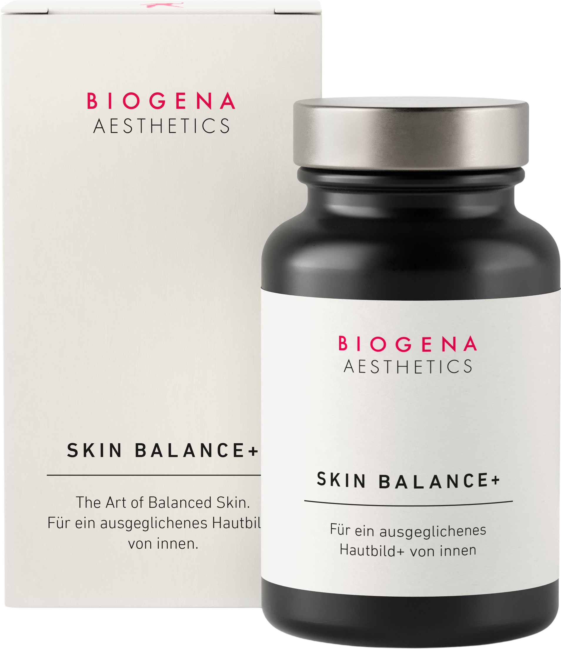 Skin Balance+ от BIOGENA AESTHETICS подпомага кожата отвътре и е базиран на внимателно разработена премиум формулация. Тя съдържа комбинация от витамини, цинк, растителни екстракти, бета-глюкани и астаксантин - хранителни вещества, които са облагодетелстващи за кожата и осигуряват балансирана грижа. Идеален за всеки, който иска да подчертае своята естествена красота.