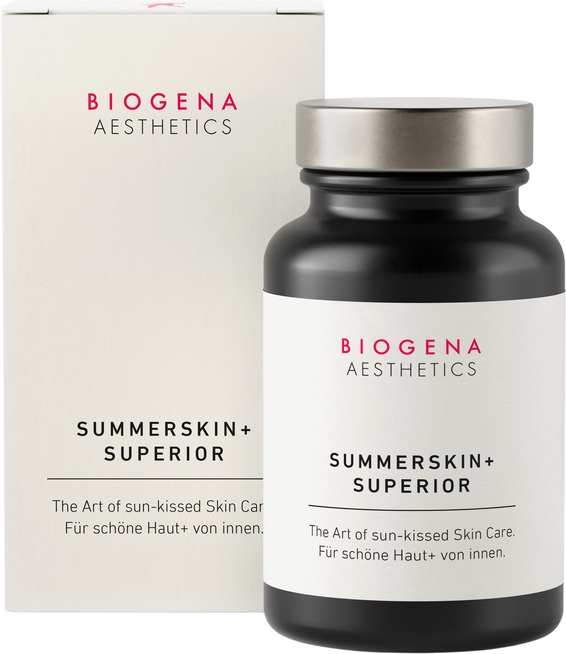 SummerSkin+ Superior от BIOGENA AESTHETICS е създаден да подпомага кожата в различни ситуации – било то по време на почивка на плажа или при слънчево време в планината. Ексклузивният комплекс може да се приема целогодишно като част от ежедневната рутина за грижа за кожата. Формулата обединява внимателно подбрани съставки с „+“ от обширни научни изследвания за перфектен сияен загар, който започва там, където е необходим – в дълбочина: