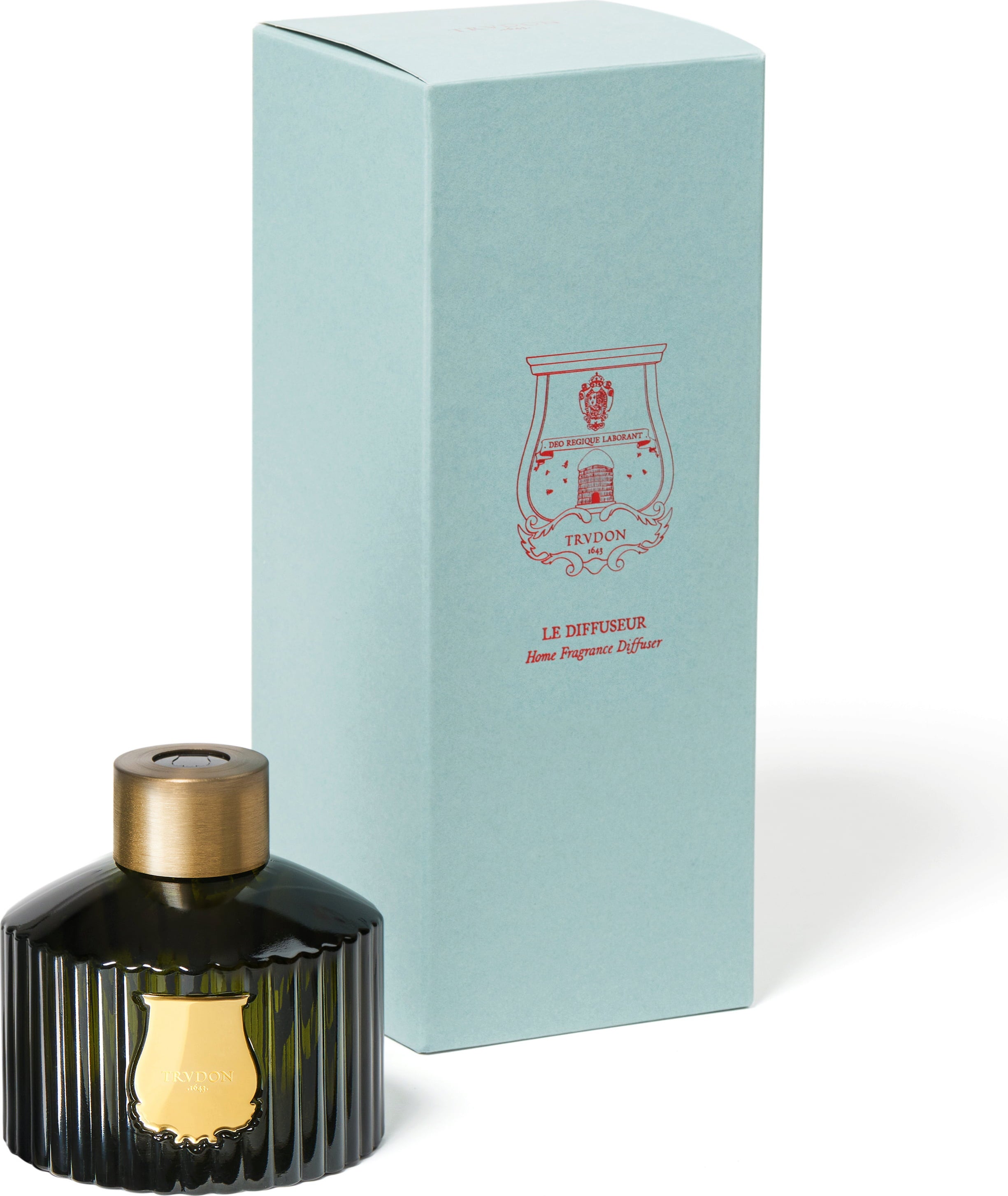 The Diffuser Abd El Kader от Trudon е изработен от иконично зелено стъкло и украсен със златен емблема. Дифузерът се изработва ръчно във фабриката на Trudon във Франция и е украсен с алуминиев пръстен. През него преминават 8 черни, натурални ратанови пръчици, които равномерно разпределят аромата в стаята.