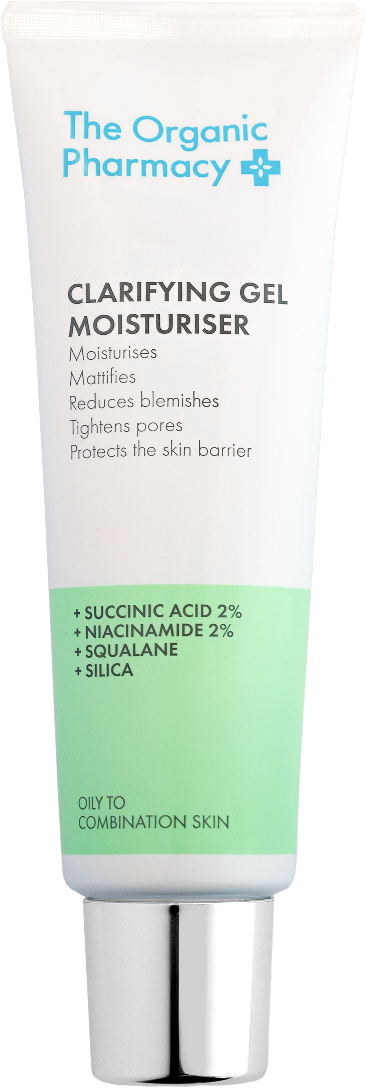 Clarifying Gel Moisturizer от The Organic Pharmacy е разработен, за да овлажнява, матира и кларфицира кожата. С формула, съдържаща 2 % янтарна киселина, 2 % ниацинамид и сквалан, концентрираната формула минимизира несъвършенствата, изглажда порите и регулира излишния себум - без да нарушава влаговия баланс. Освен това, овлажнителят оптимално защитава кожата от стреса на околната среда и намалява дразненето, така че можете да се радвате на балансиран и сияен тен.