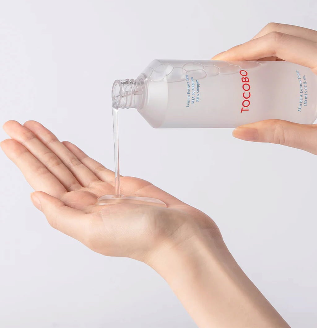 AHA BHA Lemon Toner от TOCOBO комбинира предимствата на AHA, BHA и лимонов екстракт, за да ви осигури чист и блестящ тен. Той ви предлага почистващ ефект и нежно пилинг действие, така че несъвършенствата и мъртвите клетки се премахват в една стъпка за грижа, а текстурата на кожата изглежда мигновено усъвършенствана. Освен това, тоникът подкрепя клетъчното обновление благодарение на алое вера, хиалуронова киселина и алантоин, като осигурява избистряне и необходимата влага на кожата. Формулата подпомага защитната бариера, придавайки усещане за балансирана, гладка и освежена кожа. Особено подходящ за несъвършена и мазна кожа, хората с тези типове кожа могат да се насладят на незабавен видим резултат.