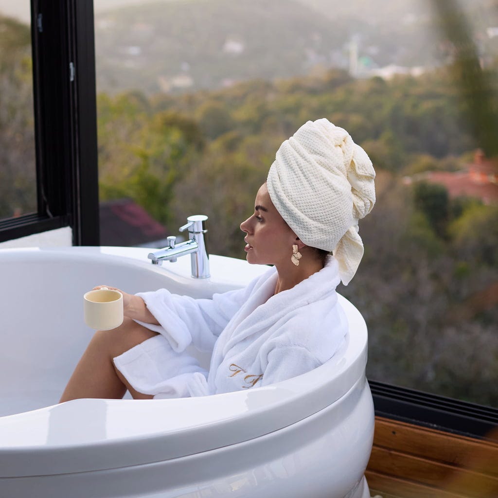 Кърпата за коса от Veganboost е изработена от микрофибър, който изсушава косата ви бързо и ефективно. Смесицата от полиестер и полиамид прави кърпата особено мека и свежда до минимум триенето, като предпазва косата ви от увреждане. Благодарение на примката в задната част на главата, кърпата може лесно да се увива и да се закрепва в тюрбан.