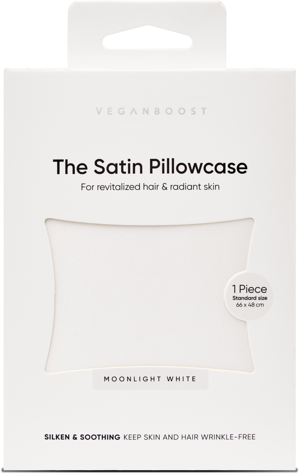 Сатенената калъфка за възглавница на Veganboost е мека като коприна и е 100% веган. Сатенената ѝ материя е нежна към косата и кожата.
