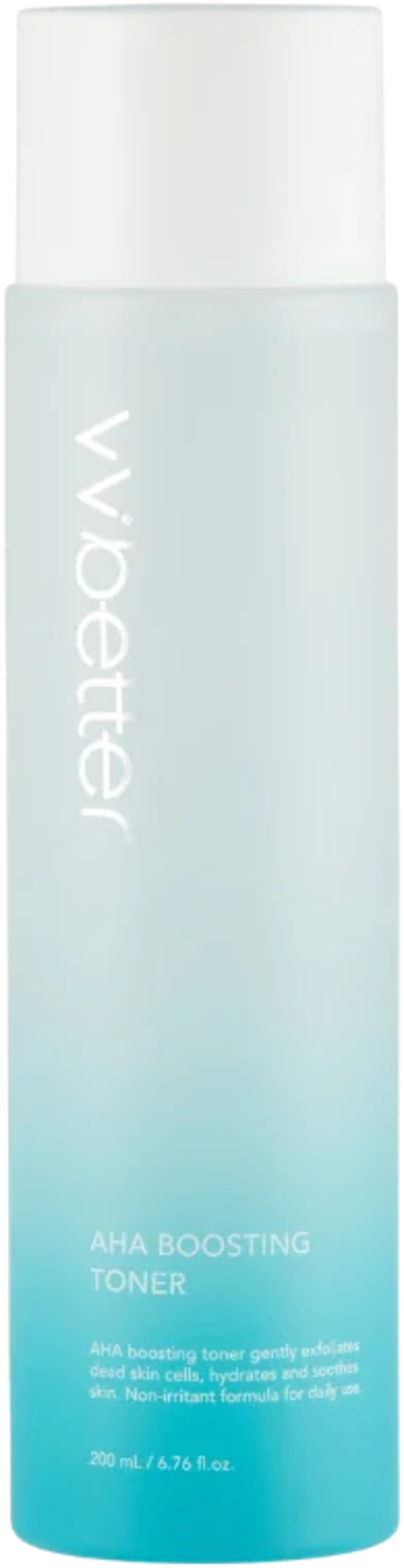 AHA Boosting Toner от vvbetter е нежен тоник за лице с pH 5,5. Гликоловата и млечната киселина предоставят нежен пилинг на кожата на лицето и подпомагат премахването на мъртвите кожни клетки. Натурални екстракти от Centella Asiatica, известна още като Индийски воден пъпеш, и прополис подпомагат регенерацията на кожата и се грижат в дълбочина. Поради ниската концентрация на AHA- и BHA-киселини, тоникът може да се използва два пъти дневно - сутрин и вечер.