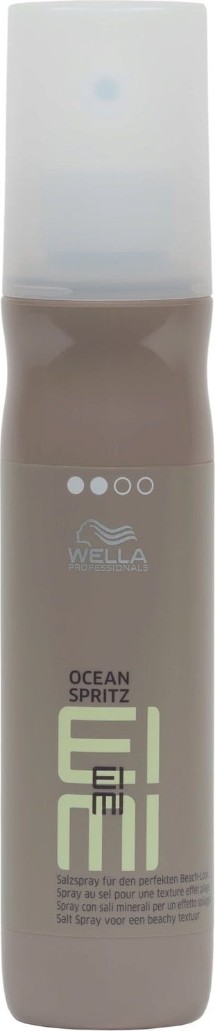 EIMI Ocean Spritz на Wella Professionalsпренася ваканционното усещане директно в банята ви и създава автентичен, леко разрошен плажен вид. Този професионален солен спрей с натурални минерални соли моментално придава на косата ви повече сцепление и текстура, така че лесно да оформяте свободни вълни с пръсти. Въпреки матовата си текстура формулата е специално разработена, за да предпазва косата ви от изсушаване и вредното въздействие на UV лъчите. С гъвкава фиксация от ниво 2, тя ви дава точното количество контрол за безпроблемна прическа, която запазва формата си през целия ден. Насладете се на успокоена повърхност на косата и на финиш с фиксация, който подчертава естествената текстура на косата ви, без да я утежнява. Лесно придайте обем на визията си с професионално текстурирано покритие, което перфектно подчертава вашата индивидуалност.