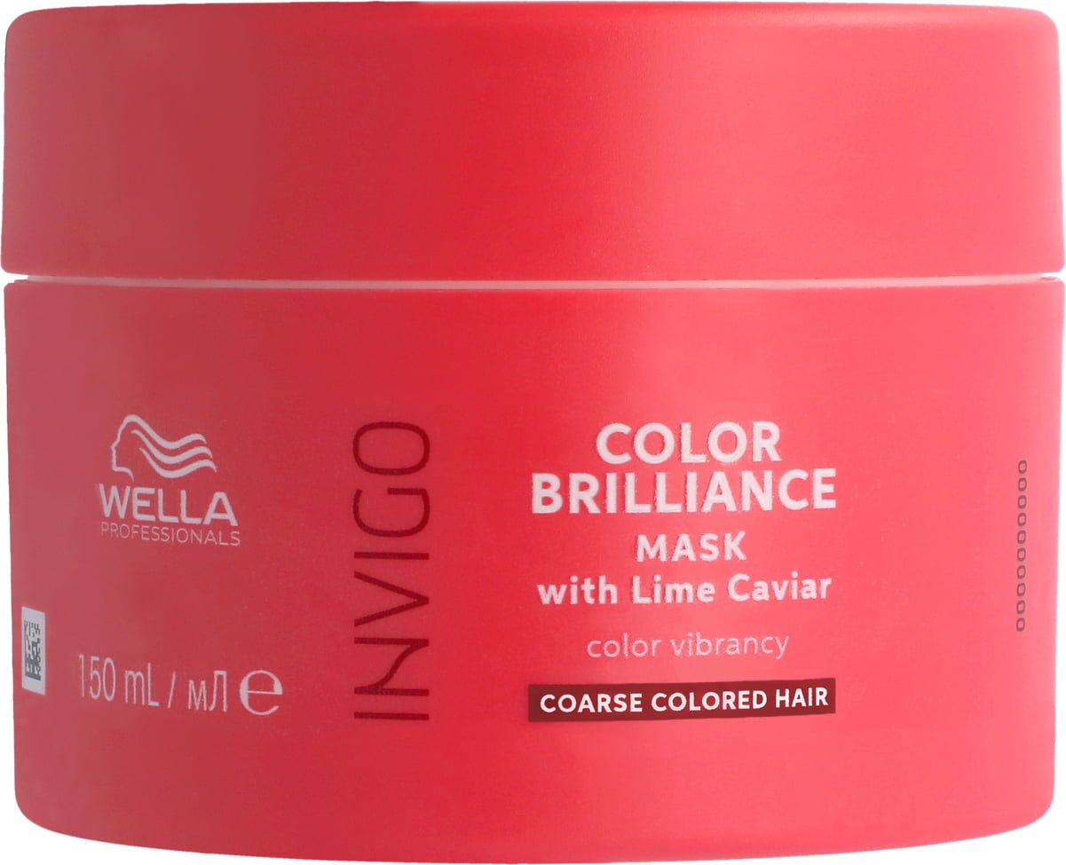 Invigo Color Brilliance Mask Coarse на Wella Professionals осигурява на косата ви точно необходимото внимание след боядисване. Благодарение на иновативната формула с хайвер от лайм и ценен витамин Е косата ви е интензивно подхранена, а блясъкът на цвета е издигнат на ново ниво. Вграденият метален пречиствател надеждно защитава гривата ви от вредните метални отлагания в чешмяната вода, които могат да направят цвета ви матов. Насладете се на забележимата гладкост и красив блясък веднага след употреба. В комбинация с подходящите шампоан и балсам от линията Invigo Color Brilliance можете да постигнете най-добрите резултати за дълготраен и ярък цвят на косата. Маската осигурява перфектния "уау" ефект и също така нежно предпазва косата ви от оксидативен стрес - идеалното подобрение на рутинната ви процедура.