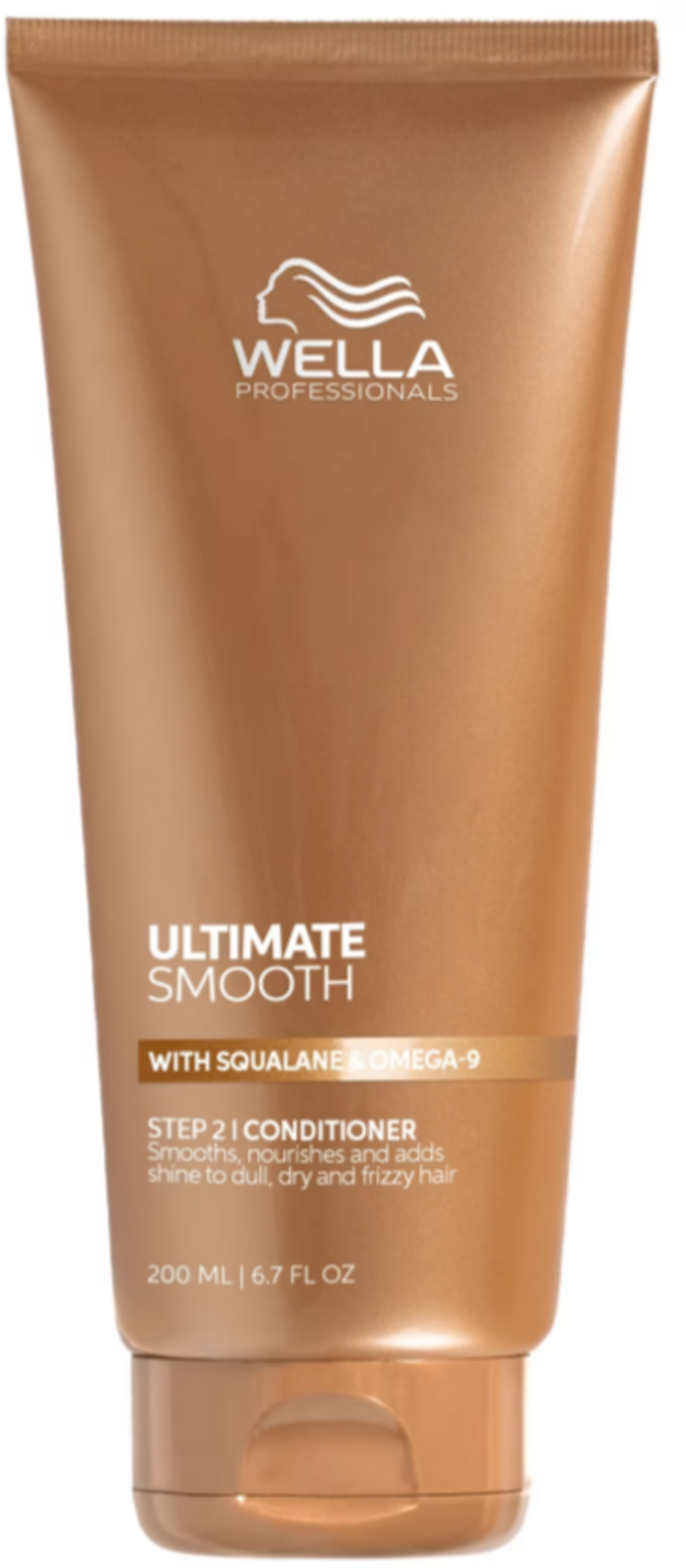 Балсамът Ultimate Smooth на Wella Professionals е вашият ежедневен партньор за непокорна, суха и изтощена коса. Само за 30 секунди леката като перце текстура интензивно подхранва дължините, без да ги утежнява, и ви осигурява до 72 часа дълготрайна еластичност. Благодарение на патентованата технология със сквалан и омега-9 косата ви е подсилена отвътре навън, а отвън е създадена защитна бариера срещу накъсване. Балсамът моментално изглажда повърхността на косъма и превръща чупливите текстури в плавна, блестяща грива, която се разресва без усилие. Насладете се на луксозния завършек и успокоената текстура на косата, които усъвършенстват външния ви вид всеки ден и оставят косата ви неустоимо мека.