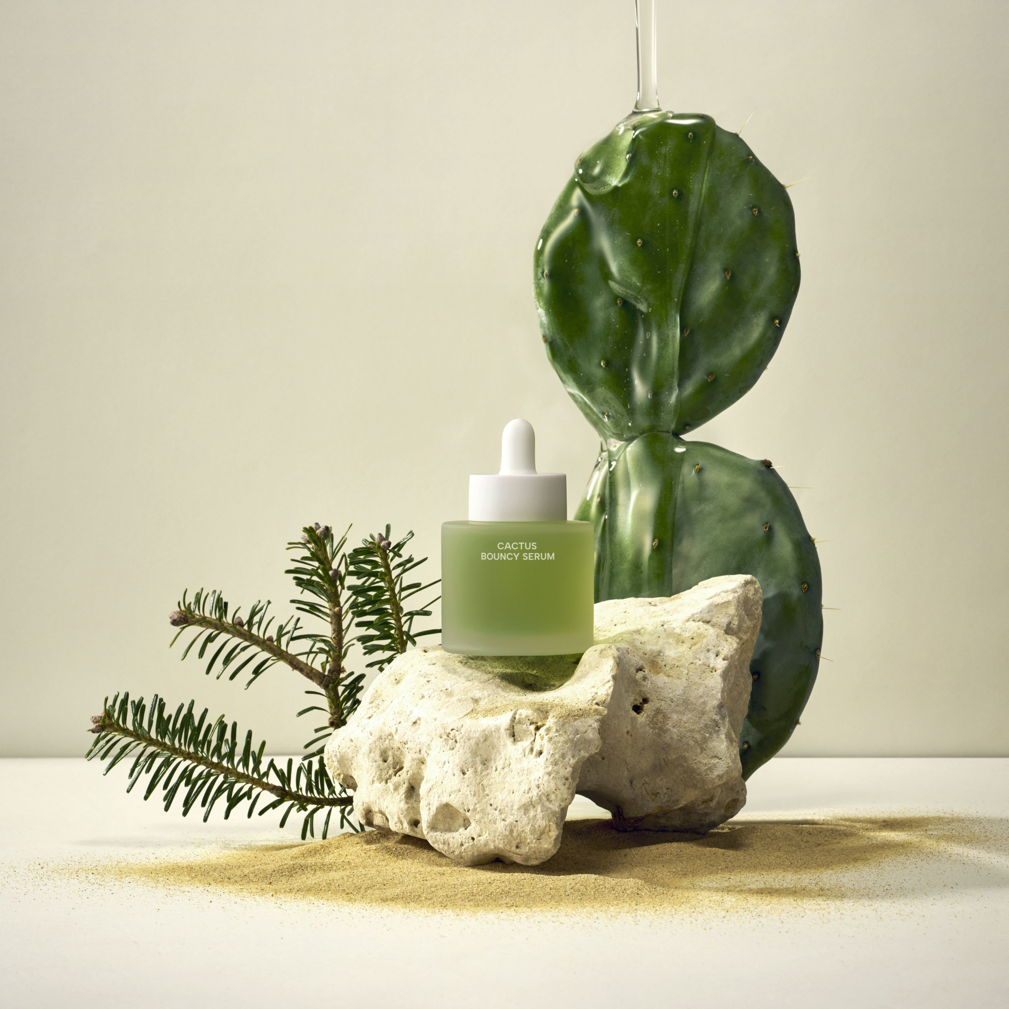 Серумът Cactus Bouncy Serum на WHAMISA се фокусира върху четири ключови съставки, които работят в синергия, за да осигурят дълготрайна хидратация. Формулата без вода се състои от 99% преструктуриран екстракт от бодлива круша и осигурява блясък. Богатите на протеини екстракти от водорасли и антиоксидантите от лавандула и розмарин поддържат защитната бариера на кожата и осигуряват регенериращ ефект. Антикомедогенните и изглаждащите свойства издигат тена на ново ниво и оптимално подчертават естествената ви красота.