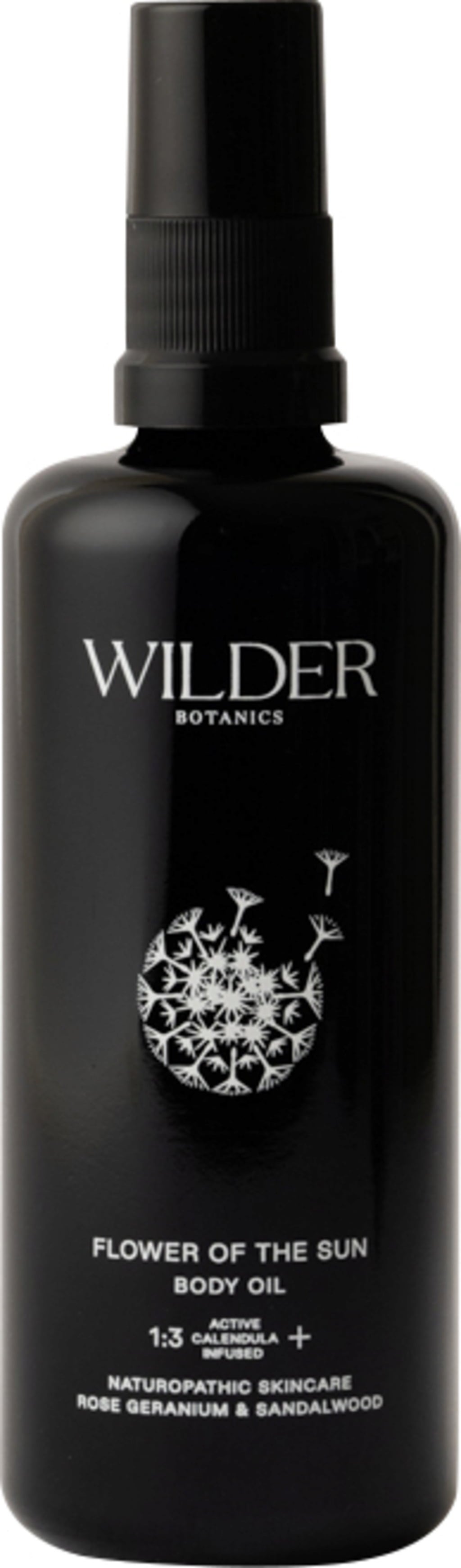 Flower Of The Sun Body Oil от Wilder Botanics е богато на интензивно подхранващи омега мастни киселини и фитонутриенти, които осигуряват дълбока хидратация и снабдяват кожата с основни хранителни вещества. Съдържащото се масло от невен допълнително повишава устойчивостта на кожата, предотвратява дразнения и осигурява мекота и гладкост. Дървесни и цветни екстракти оставят прекрасен аромат върху тялото и успокояват сетивата.